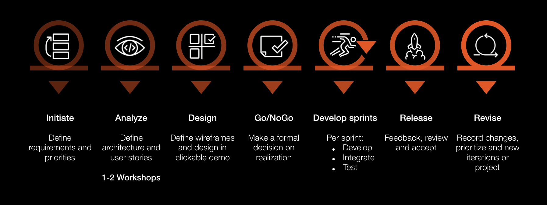 For your success we support you from the first idea till the successful delivery. Even after that you get free support to make sure your solution is working when your users are using it to the full.